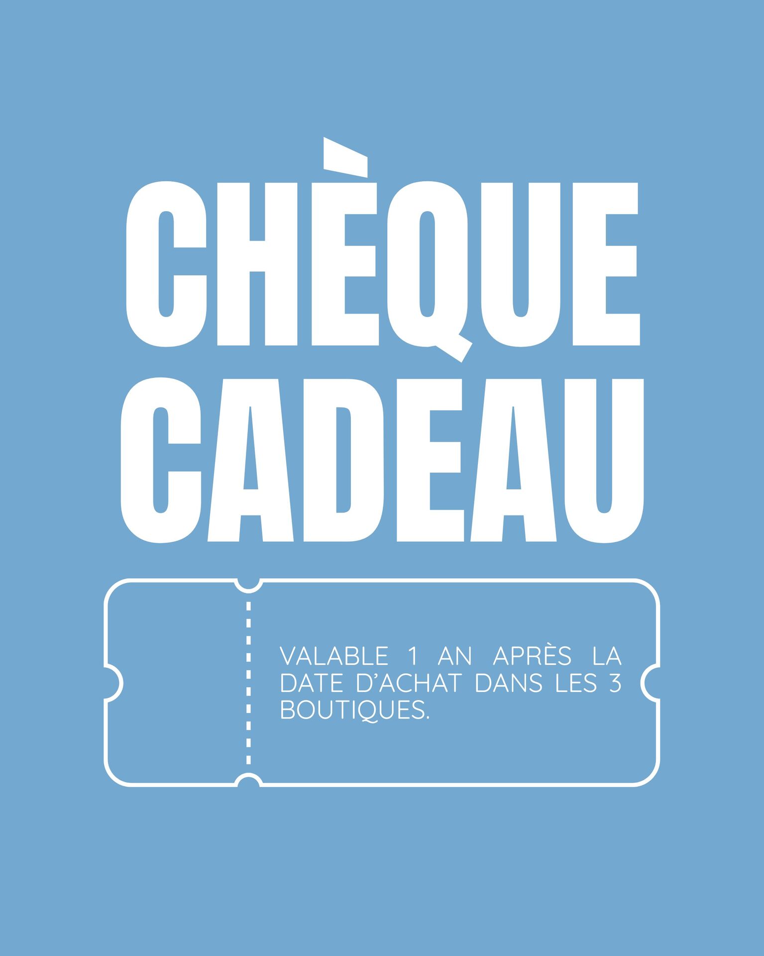Pour être sûr(e) de ne pas vous tromper, offrez un chèque-cadeau à vos proches ! Facile à cacher, puisque plus petit qu'un gros paquet, la surprise sera forcément réussie. Les chèques cadeaux sont valables 1 an à compter de la date d'achat en boutique, c'est vous qui choisissez le montant du chèque, au centime près !