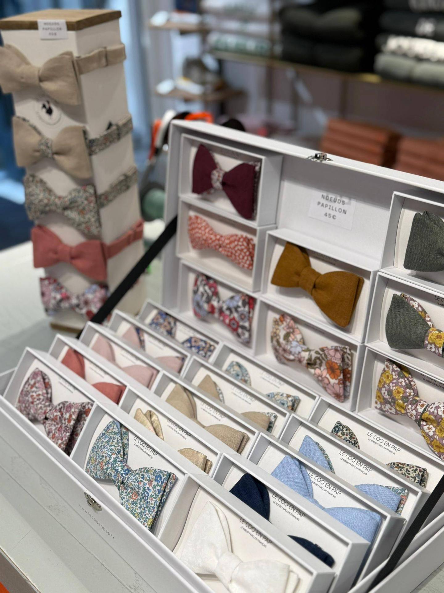 Le Coq en Pap’ est une marque reconnue pour ses accessoires faits main en France : nœuds papillon, pochettes, cravates, bretelles, boutons de manchette et masques en tissu. Chaque pièce est conçue dans un atelier français avec des tissus de qualité, souvent en éditions limitées, pour garantir un style unique.