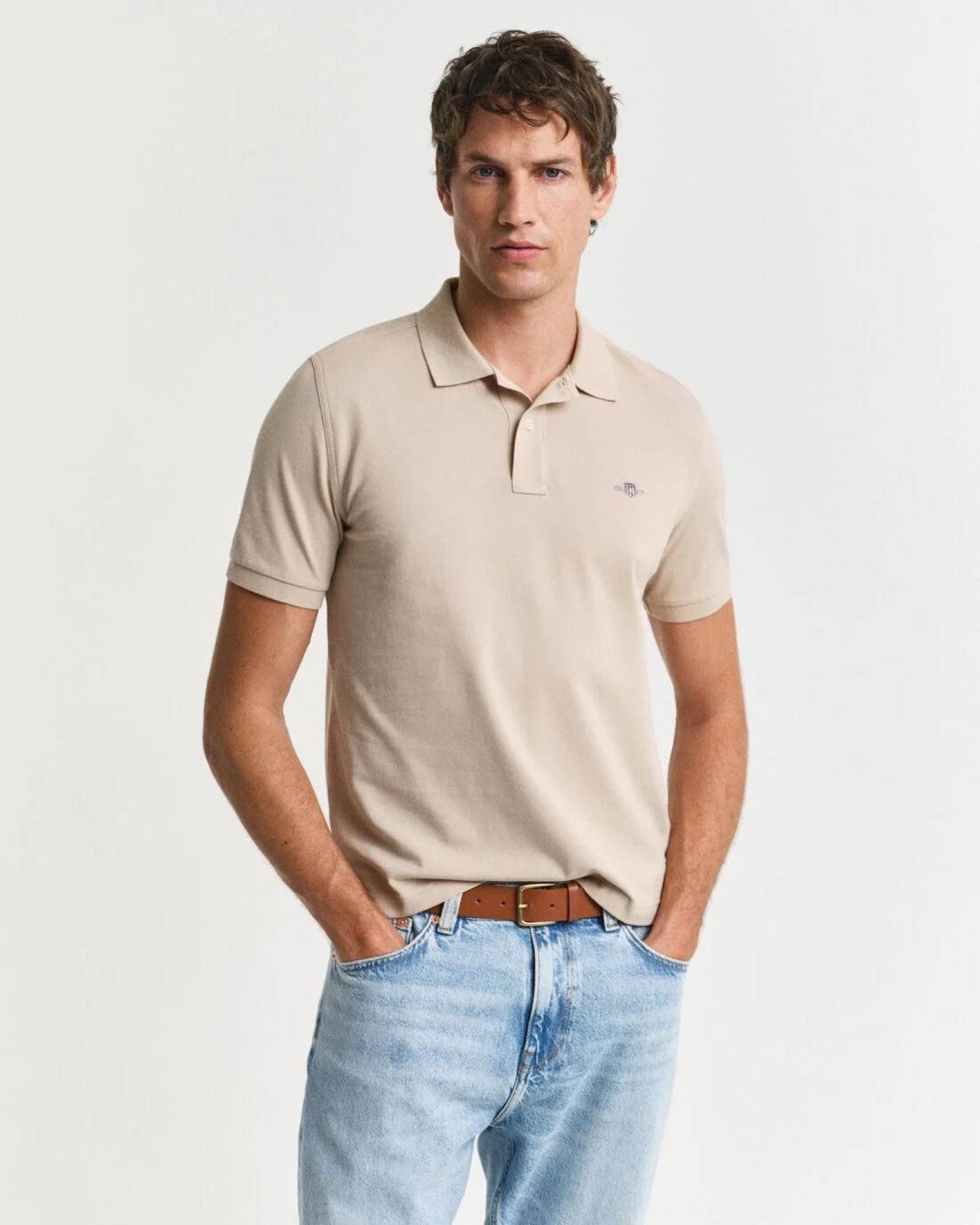 Ce polo présente une coupe regular fit, adaptée à toutes les morphologies, et se distingue par ses finitions impeccables : un col plat traditionnel, une patte de boutonnage à deux boutons, de petites fentes latérales pour plus de confort et l'incontournable logo GANT brodé subtilement sur la poitrine.