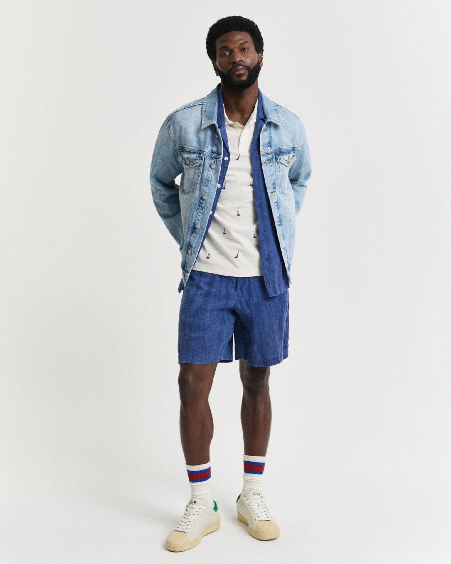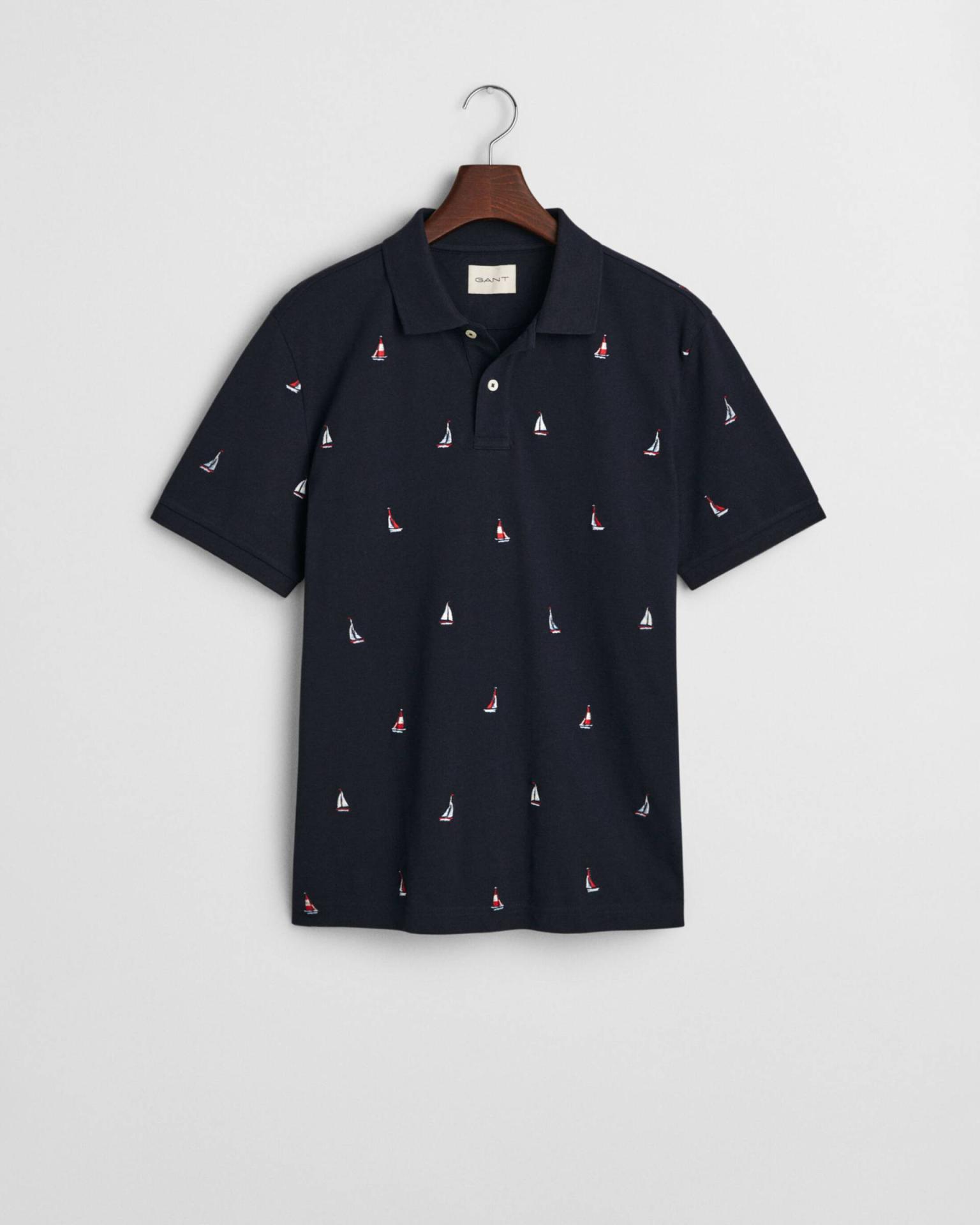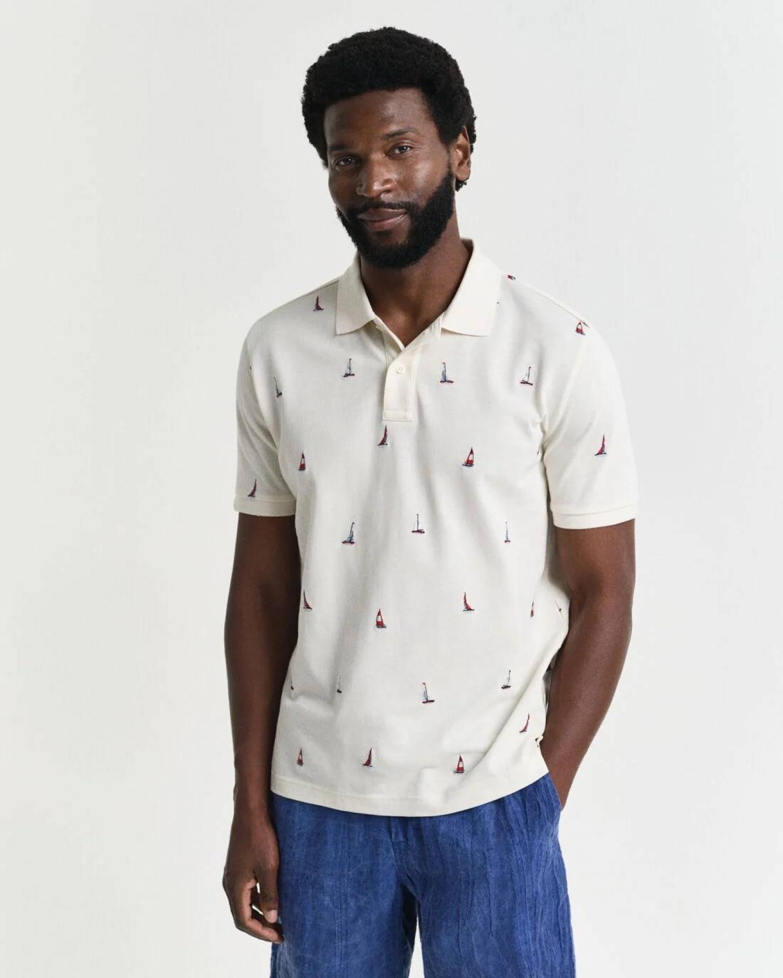 Sa coupe regular convient à toutes les silhouettes et offre une grande liberté de mouvement. Avec son col classique façon polo, une patte de boutonnage à deux boutons et une élégante étiquette GANT sur la couture latérale gauche, ce vêtement séduit par ses finitions impeccables. Son motif nautique délicatement brodé sur l’ensemble apporte une touche raffinée et tendance, parfaite pour une tenue chic décontractée.