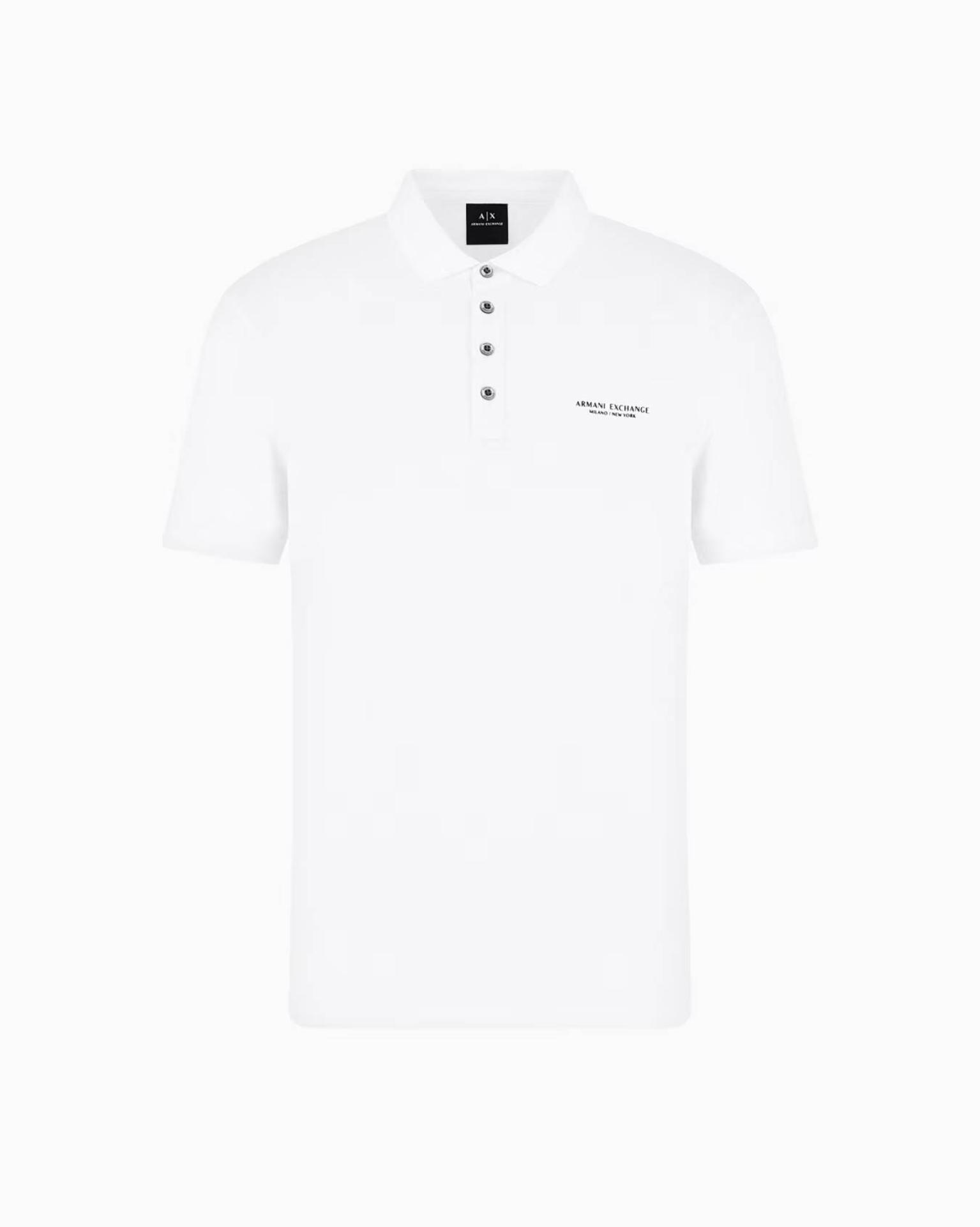 Son col classique à patte de boutonnage et son logo discret Armani Exchange sur la poitrine apportent une touche raffinée et moderne, typique de la maison italienne.